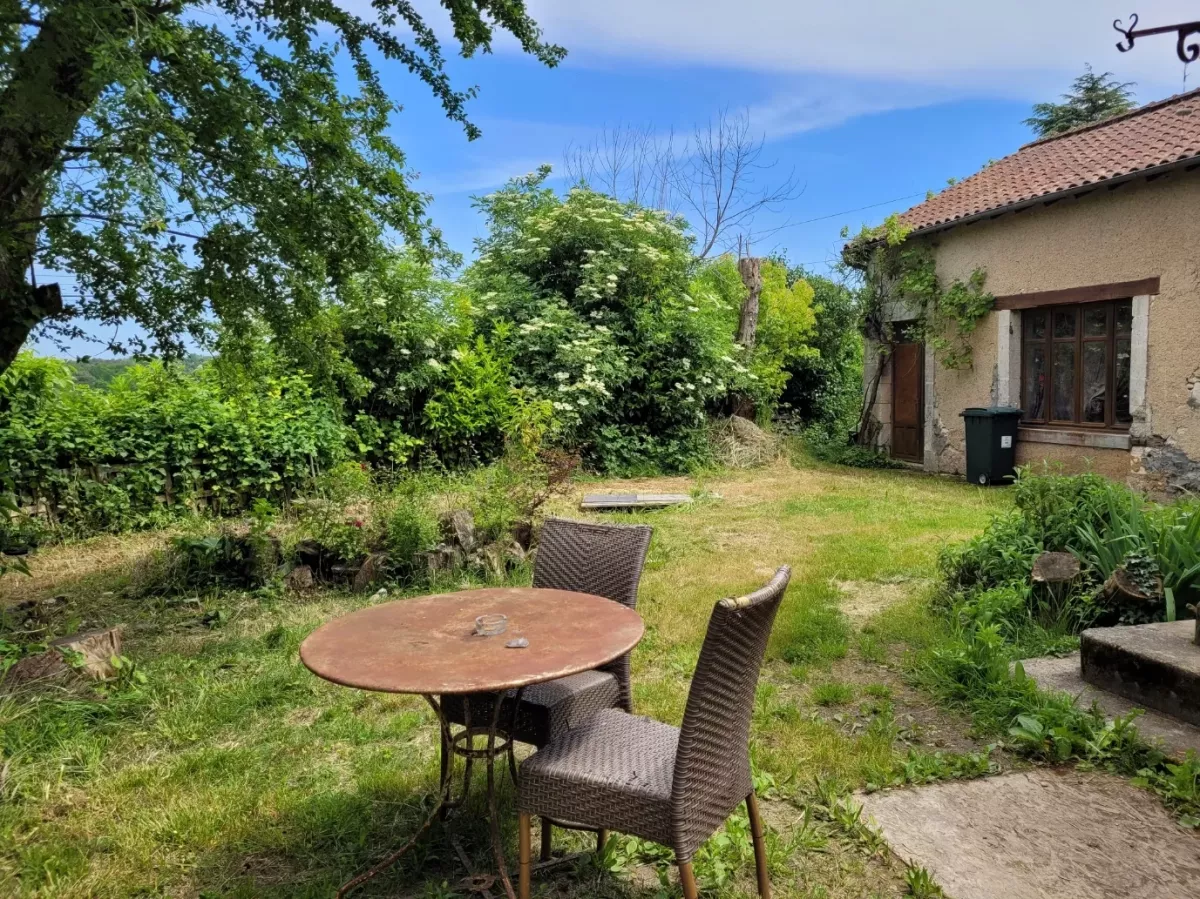 Dans un petit hameau à 5 min de Marsac, maison en pierre avec dépendances. Grande cheminée, cuisine séparée, mezzanine, deux chambres, salle d'eau. Jolie jardin arboré. Quelques travaux à prévoirs.
