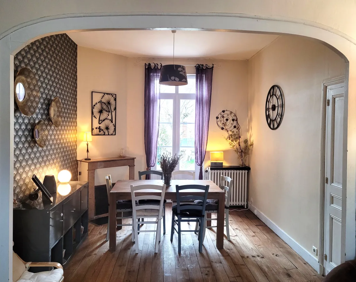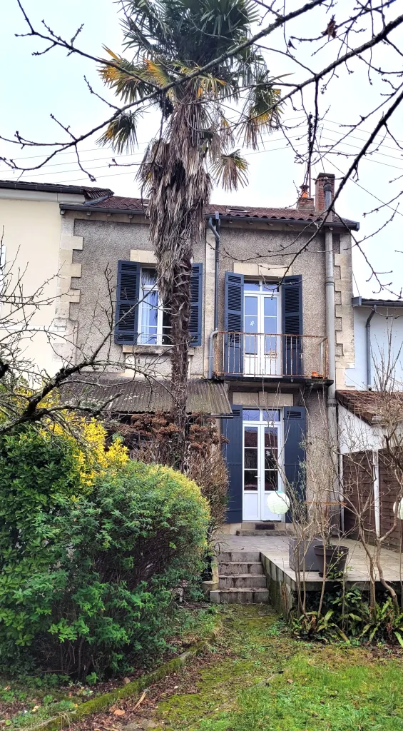 Quartier clos-chassaing, maison familiale donnant sur deux rues, proche des écoles et des commerces. Entrée, cuisine séparée, salon-séjour ouvrant sur la terrasse et son jardin arboré. Au premier, deux chambres, dressing, salle de bains. Au second, une grande chambre, cabinet de toilette et une pièce. Possibilité de restructurer pour faire deux chambres. Cave et bureau aménagé. Jardin sur l'arrière, petite dépendance et garage.
