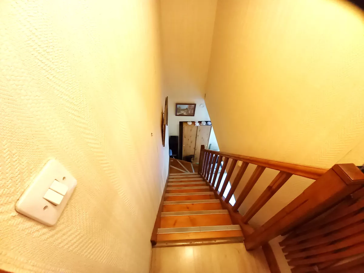 Escalier dans le salon donnant sur 2 chambres à l'étage dont une avec salle d'eau