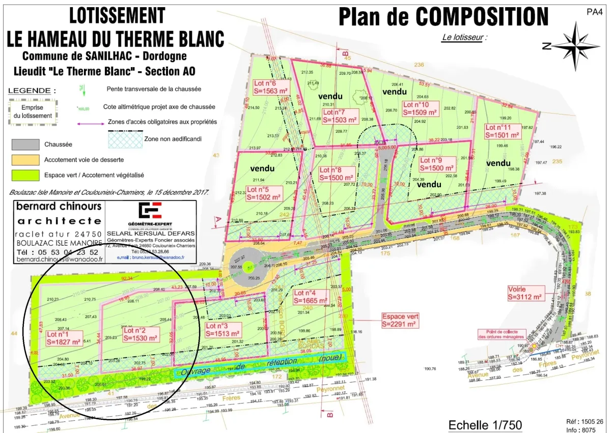 Sanilhac, en situation dominante, terrains à bâtir libre de constructeur. Eau, électricité, téléphone en façade. Assainissement individuel.
